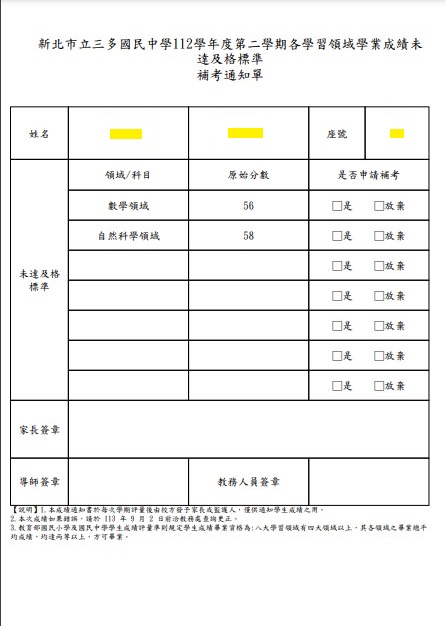 1. 學習現況通知單、補考申請單:詳如附件【附件三-1、三-2】