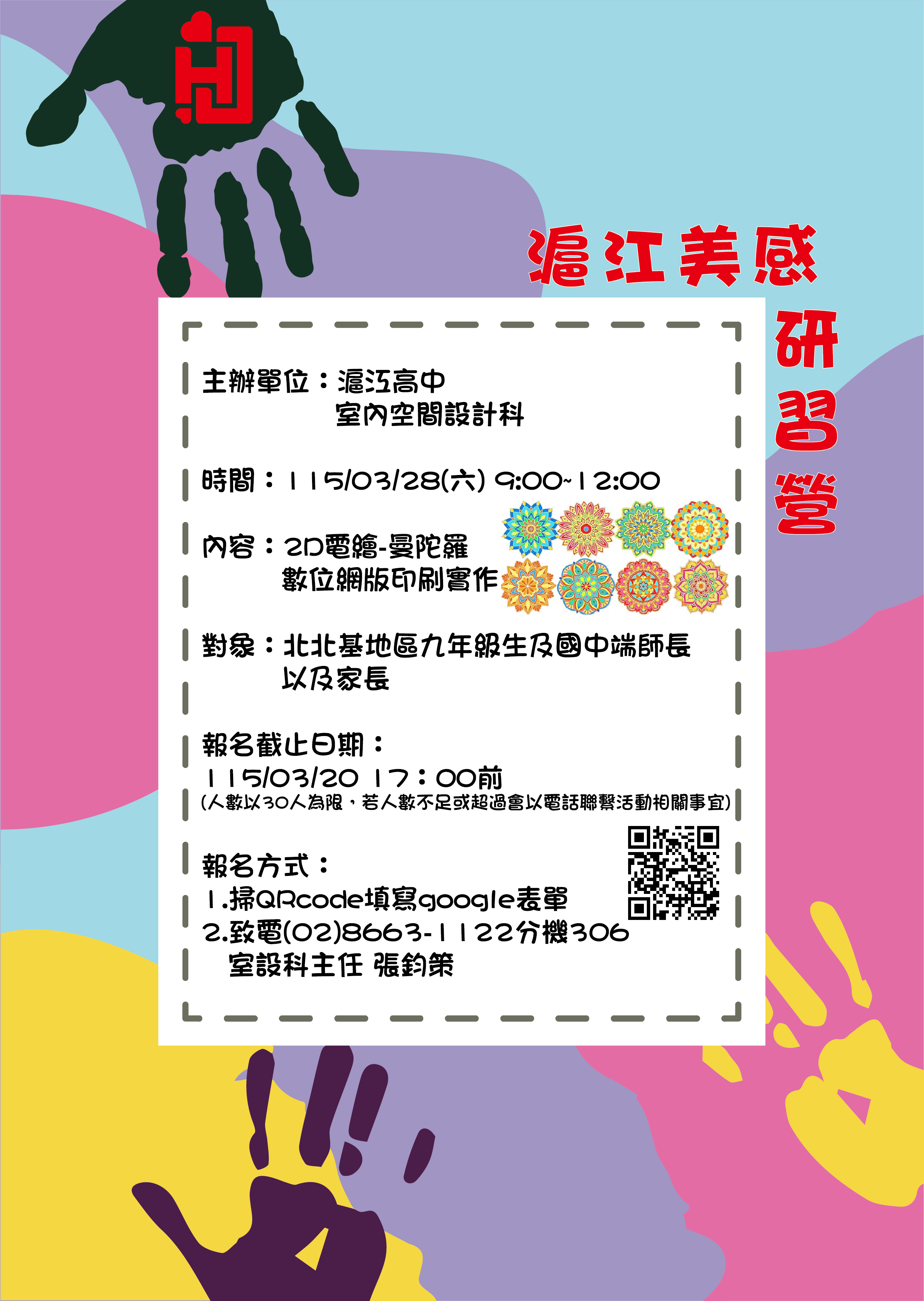 三、 活動資訊: 時間: 115 年 3 月 28 日(星期六)09:00 – 12:00。 地點: 臺北市私立滬江高中(臺北市文山區羅斯福路六段142巷1號)。 報名: 請掃描海報 QR Code 或連結 Google 表單https://forms.gle/CuEidLNZm9J3rFoB6報名。